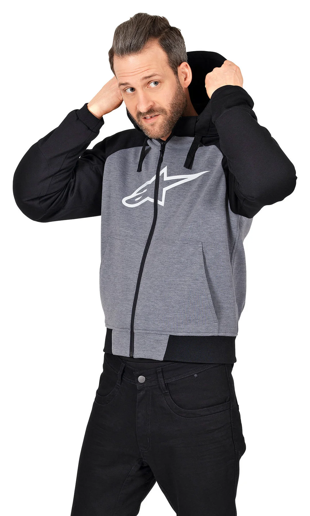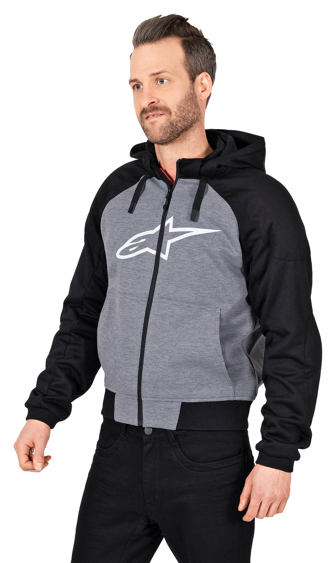 Calling all hoodie fans: The *Chrome Sport* Hoodie from Alpinestars is a “motorcycle jacket” that doesn’t actually look like one! Of course, the biker hoodie is only for sunny days because the cotton outer shell lets everything through. It’s fully breathable, absolutely wind-permeable, and not at all waterproof. But in safety terms, this hoodie jacket still gives a very good level of protection – just as you would expect from Alpinestars.