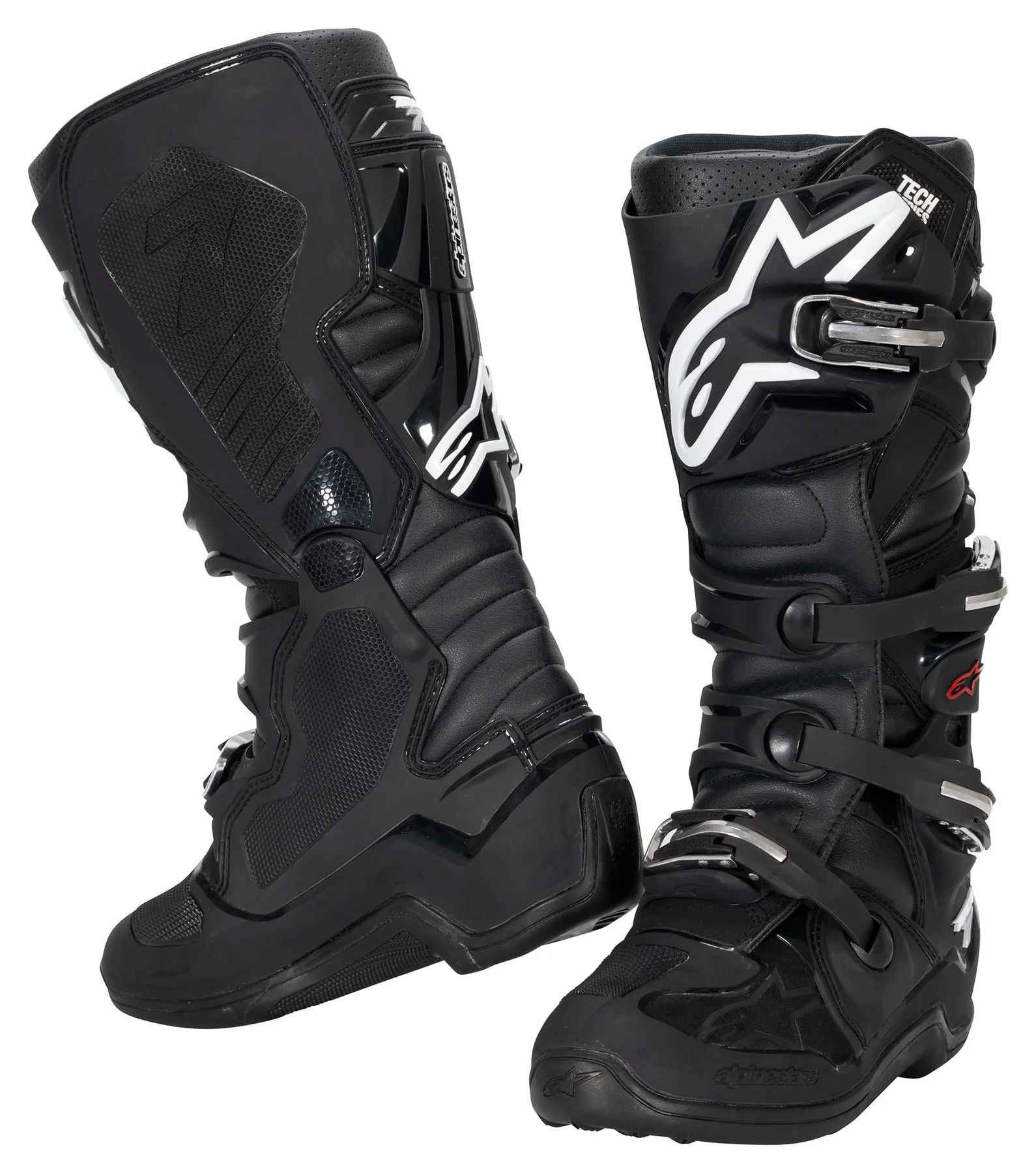 To feel at one with your bike when you go off-road, the right boots are essential. The engineers and designers at Alpinestars have gone to incredible lengths to create a boot that gives you exactly this feeling. The result is the Alpinestars *Tech 7* Motocross. With this innovative motocross boot, Alpinestars has used trailblazing materials and technologies in every aspect: protection, function, comfort and weight.