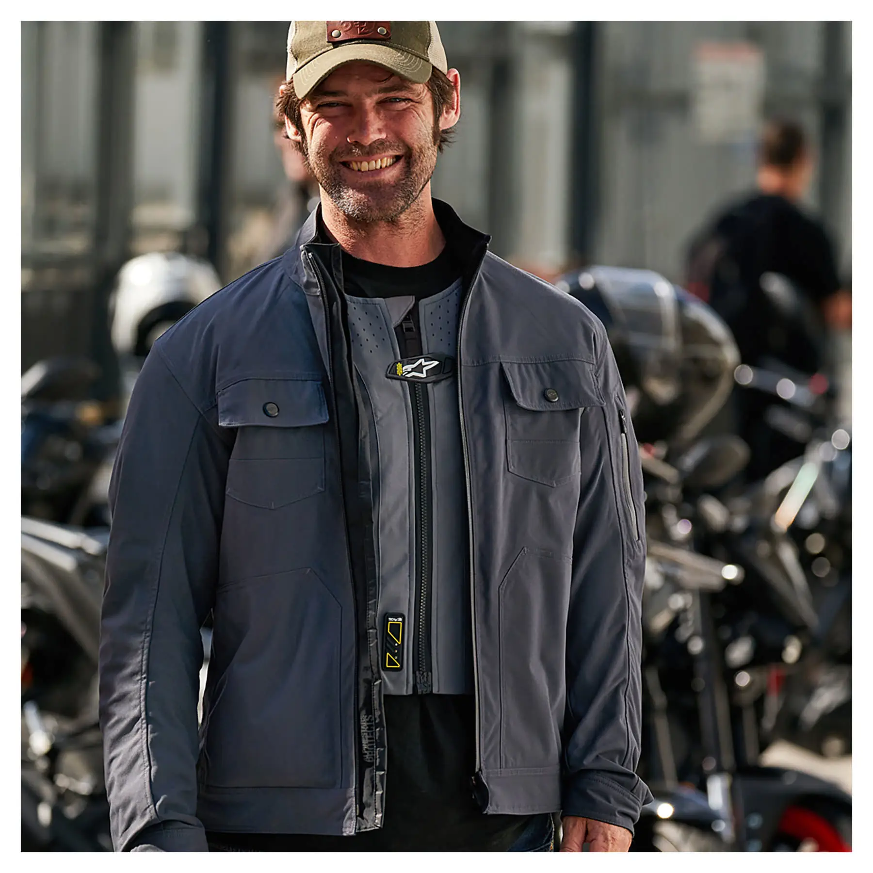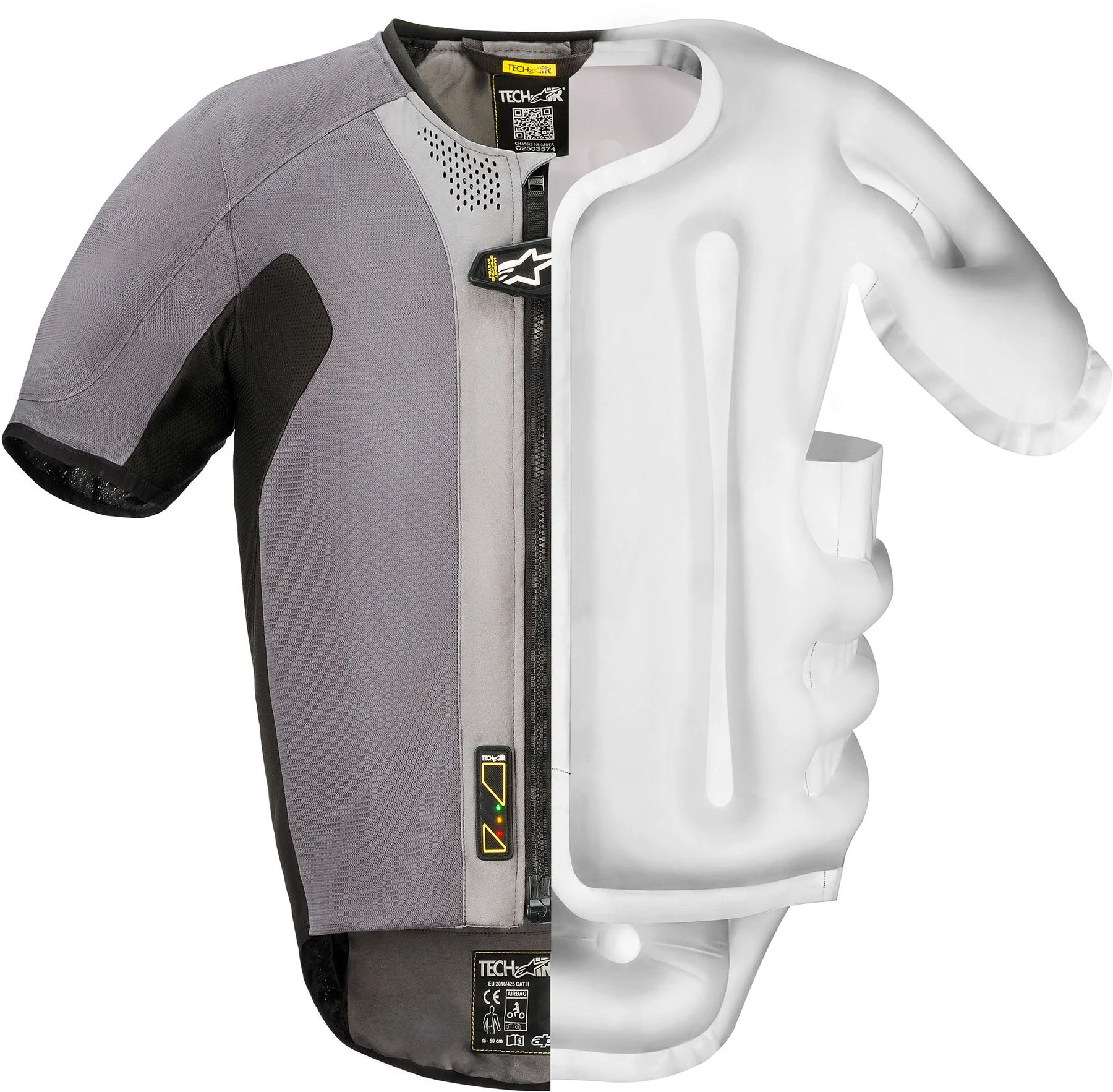 The Tech-Air 5 Portable Vest is designed to be worn under any well-fitting textile jacket, bearing in mind that the jacket must be large enough to accommodate the expansion of the airbag in the event of an accident. For textile jackets, this requires an additional 4 cm of space around the circumference of the body. For drivers who wish to wear a sports leather jacket, Tech-Air 5 can also be worn with Tech-Air compatible leather jackets that have built-in leather expansion panels to allow for airbag inflation.