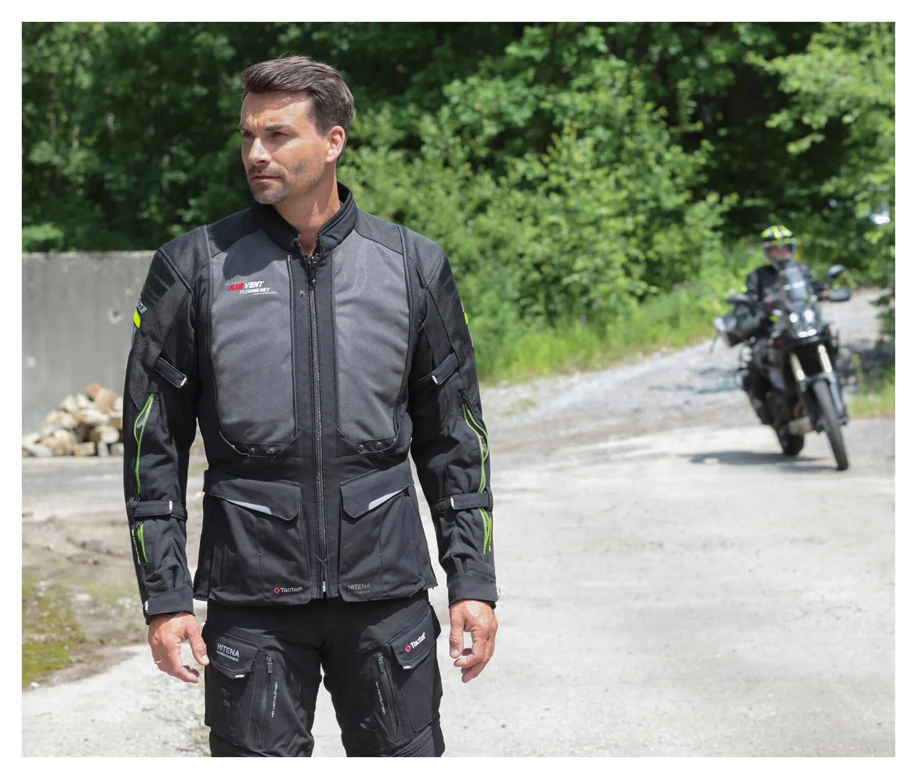 - HITENA fabric reinforcement on the shoulders, upper sleeves and elbows, 100% polyamide