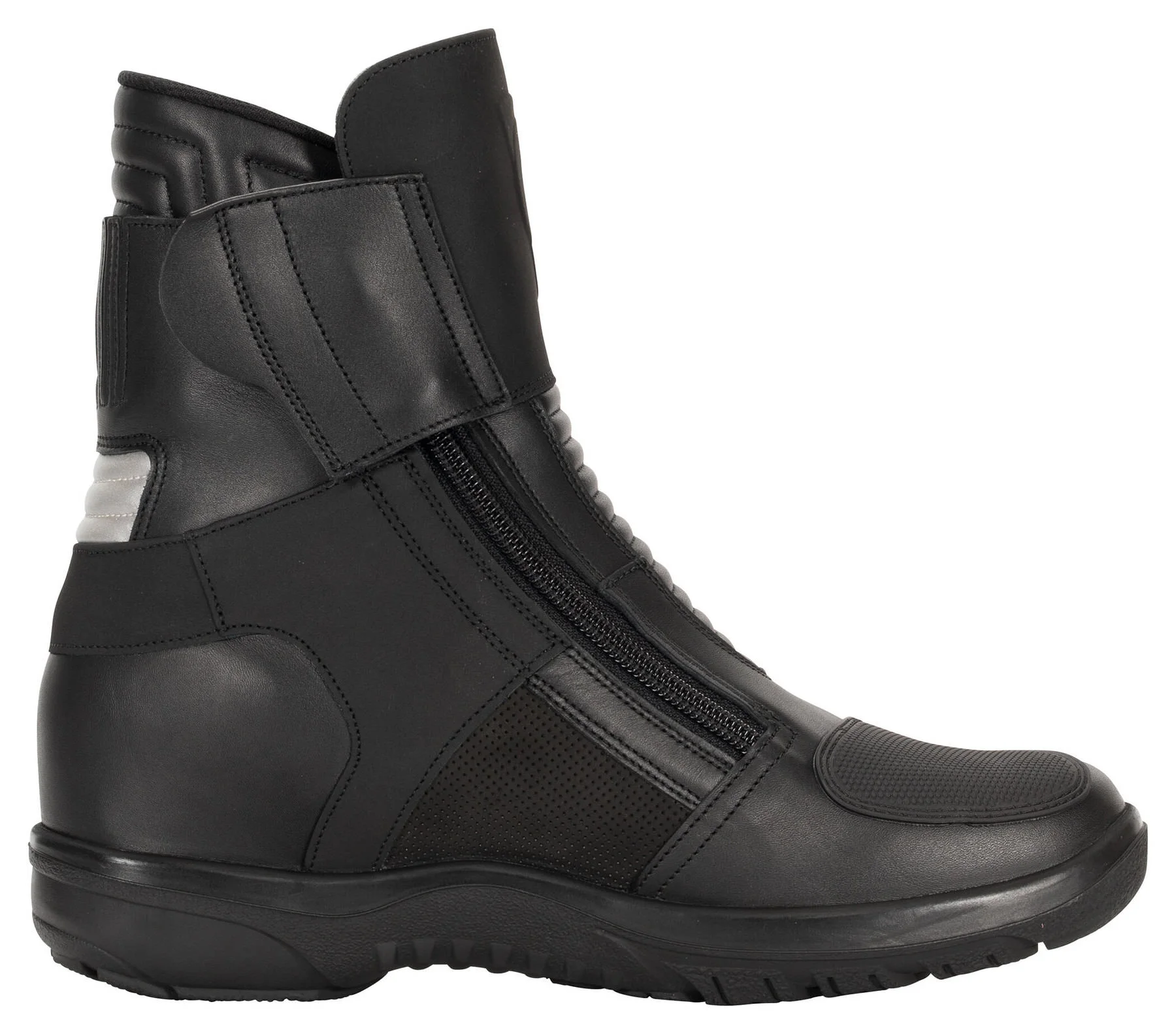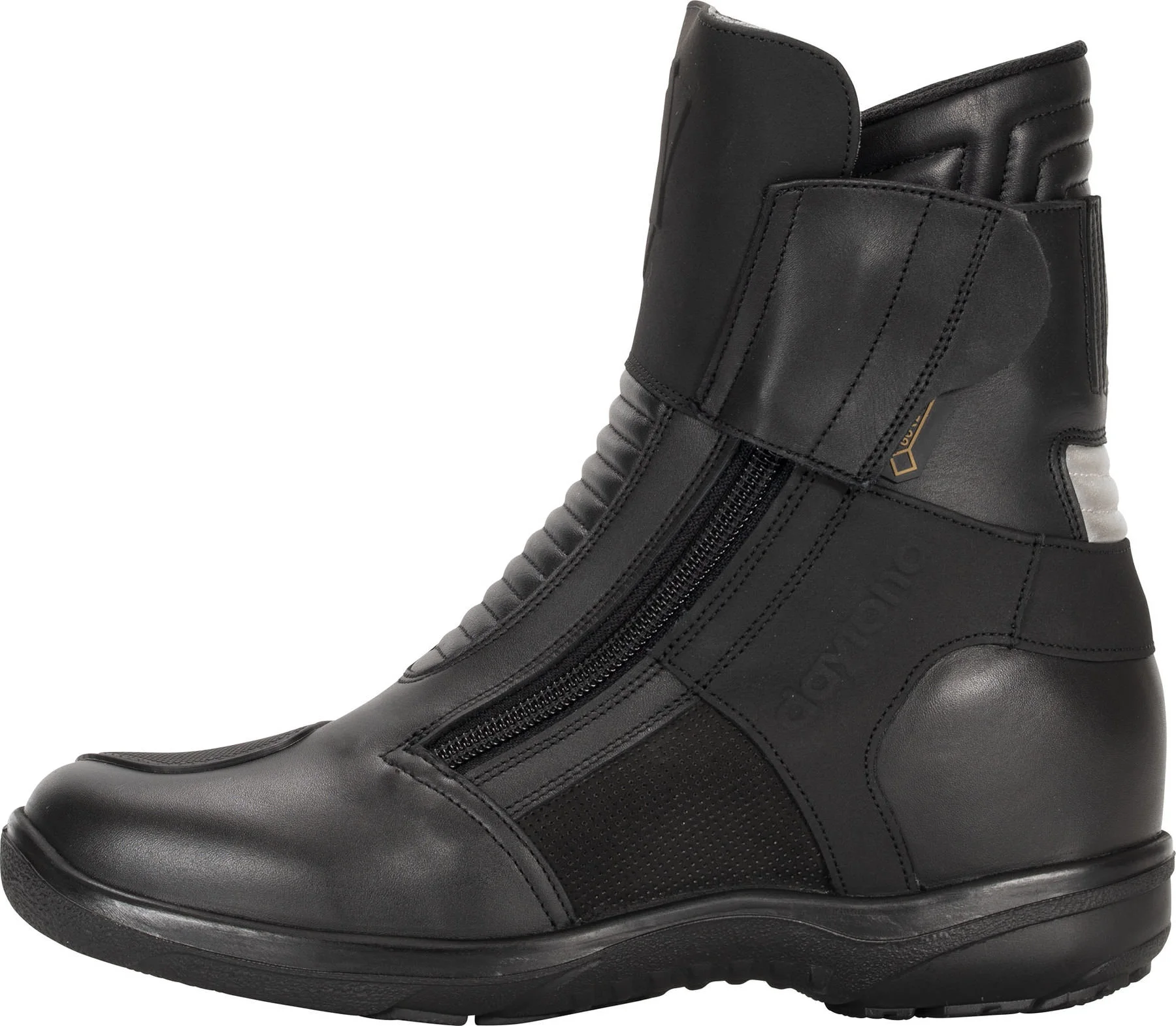 Definitely a “tricky” customer, is how the Daytona *Max Sports GTX* motorcycle short boot comes across. Daytona has poured a wealth of experience into these sports touring boots, as reflected in the high-end specification, not to mention an important hidden feature, roughly 6 cm high. This is the integrated heel lift, which is made of leather-covered cork and gives you much greater stability when sitting on your motorcycle.