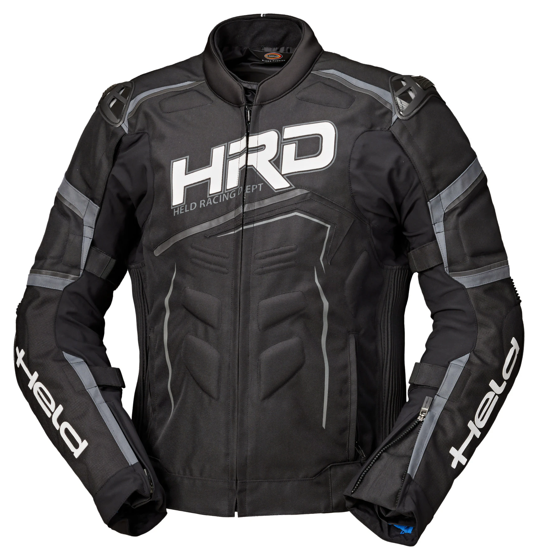 With the hero *Hayato Top* a pretty hot iron is storming onto the track. A textile jacket, tight-fitting, totally trimmed for sports, with many stretch inserts, perforations and airvents