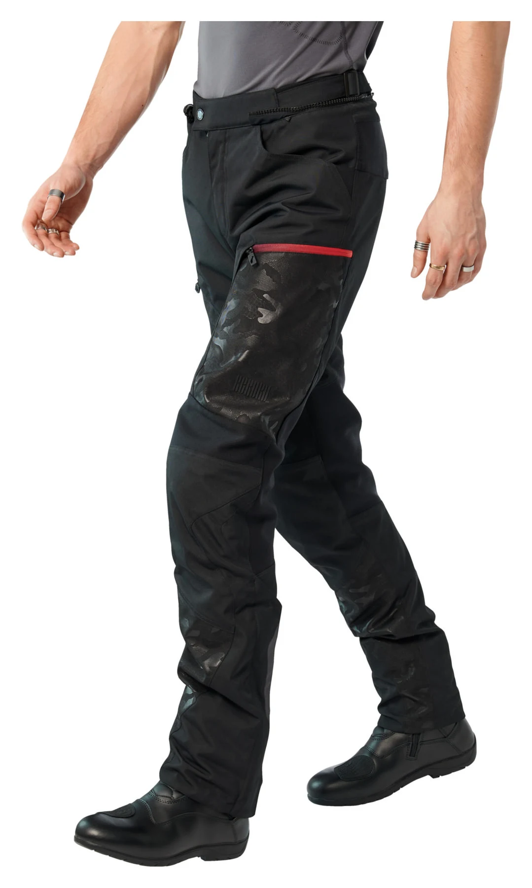You know what you want: dynamic textile motorbike trousers with a sporty, slim cut – comfortable, rainproof, safe and cool design. Simply a great piece. Rekurv has made it. The *E-10.02* motorbike trousers in black with camouflage parts and abrasion-resistant 600D material reinforcement. The built-in Z-Liner climate membrane is breathable and protects you from wind and weather. These biker pants fit really well. Nothing “flutters”. The stretch material in the back of the knees is also nice. It cuts and constricts even when the knees are very bent. With the Rekurv *E-20.02* you can be seen among all the other curve hunters.