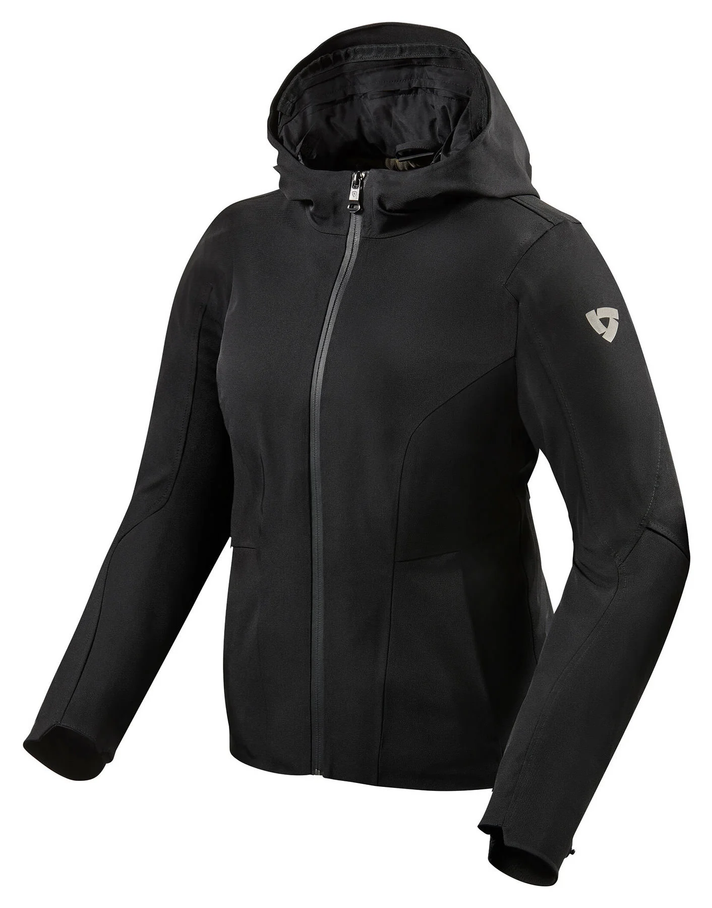 For the fast ride into the city – rain or storm, whatever the weather. With the REV’IT! *Bellafonte* ladies’ softshell jacket, you are snugly wrapped up and well protected. The integrated climate membrane and removable thermal liner takes care of this. The various elbow, shoulder and optional back protectors make the *Bellafonte* a serious motorbike jacket. Looks great with biker jeans!