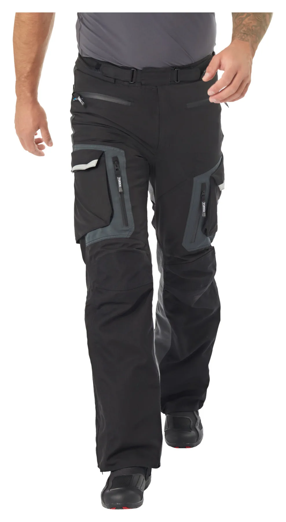 - Trouser legs can be pulled over enduro boots