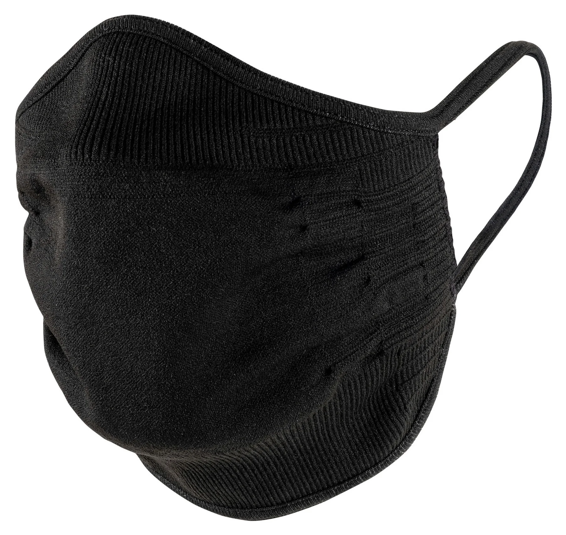 The three-dimensional knitted structure is more densely knitted in the mouth and nose area to reduce the speed of respiratory flow or saliva/mucus droplet ejection. Nevertheless, the UYN® Community Mask allows you to breathe easily, so that the mask can be worn during sports activities without any problems.