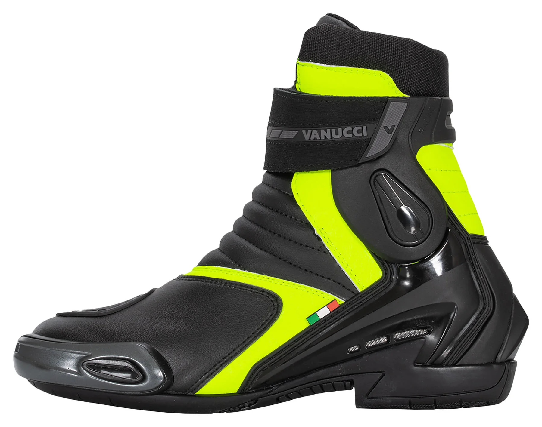 The Vanucci *VSB-2* steps right up to the challenge as a superbly featured motorcycle boot which supports you in all sporty riding situations. The *VSB-2* is light and rugged, has a breathable textile lining and, with its flexible ankle protection and external heel cups, it ensures a great all-round feel right from the start.